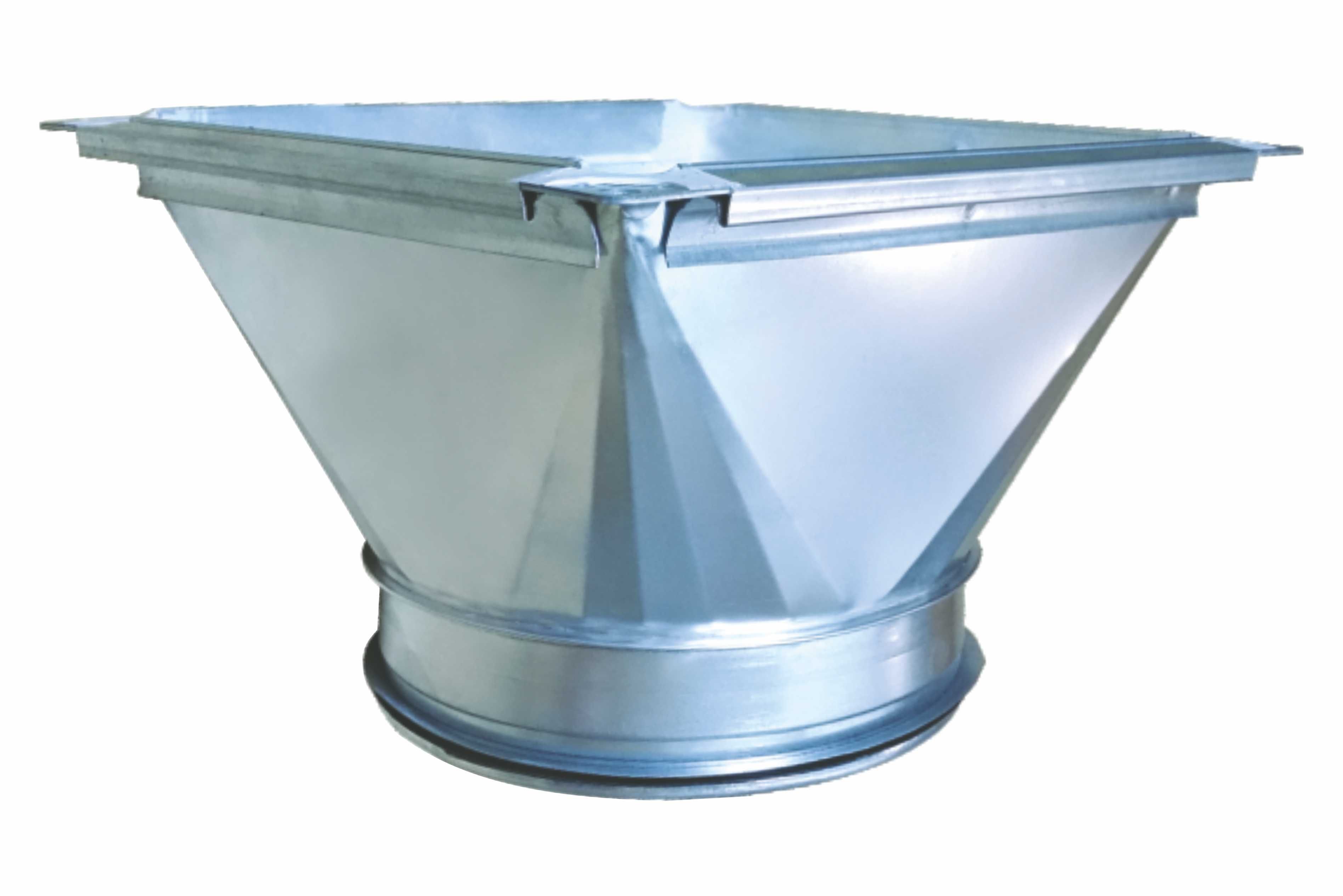 Açıklama: Dönüştürücü boru sisteminin kesitinini dikdörtgenden yuvarlağa değiştirmek için kullanılmaktadır. Bağlantı parçası sayesinde tüm ebatları serbestçe değiştirilebilir ve her yönde hareket ettirilebilir bir havalandırma sisteminin tasarlanması sağlanır. Yuvarlak çıkış genellikle bir erkek uca sahiptir. KPRL7 bağlantı parçası contalı bir erkek uçla birlikte tedarik edilir.