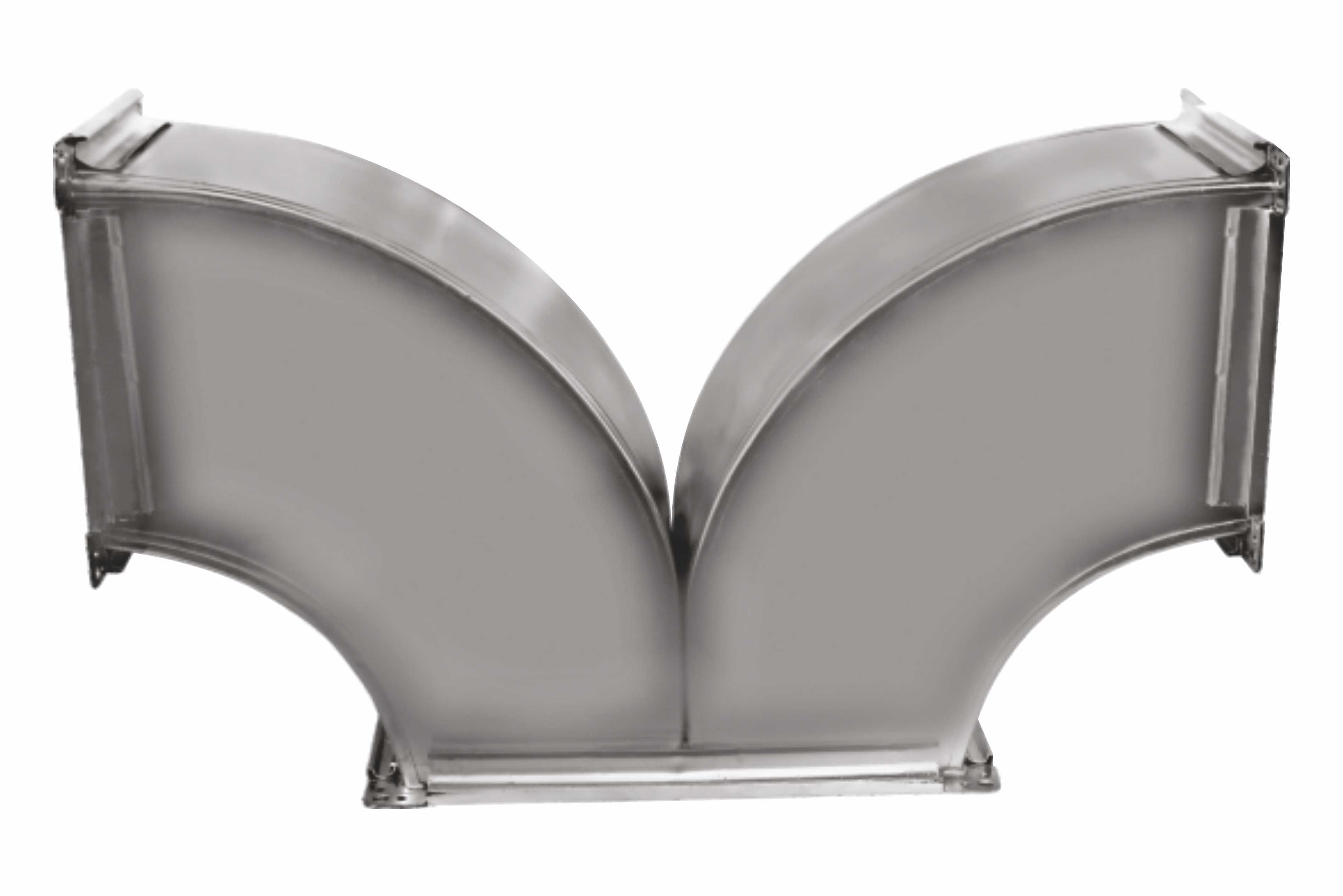 Açıklama: Eşmerkezli Y kolunun uçlarında levha metal bağlantı profili montaj çerçeveleri mevcut olup, çapraz levha ondülasyon yöntemiyle sertleştirilmiştir. Herhangi bir açıya doğru yönlendirilmiş iki kapaklı bir havalandırma sisteminin tasarlanmasını sağlamaktadır. Döner vanalar da ayrıca kullanılabilirler.